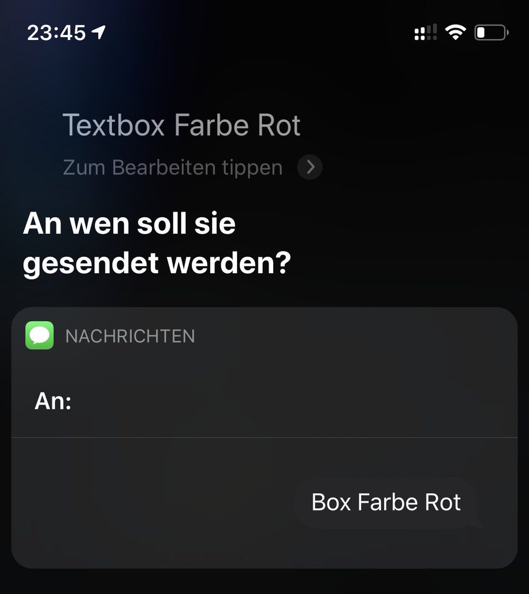 Auch wird das direkt ansprechen meiner #HomeKit Lampe „Textbox“ ignoriert — stattdessen möchte #Siri lieber eine SMS versenden. 🤨