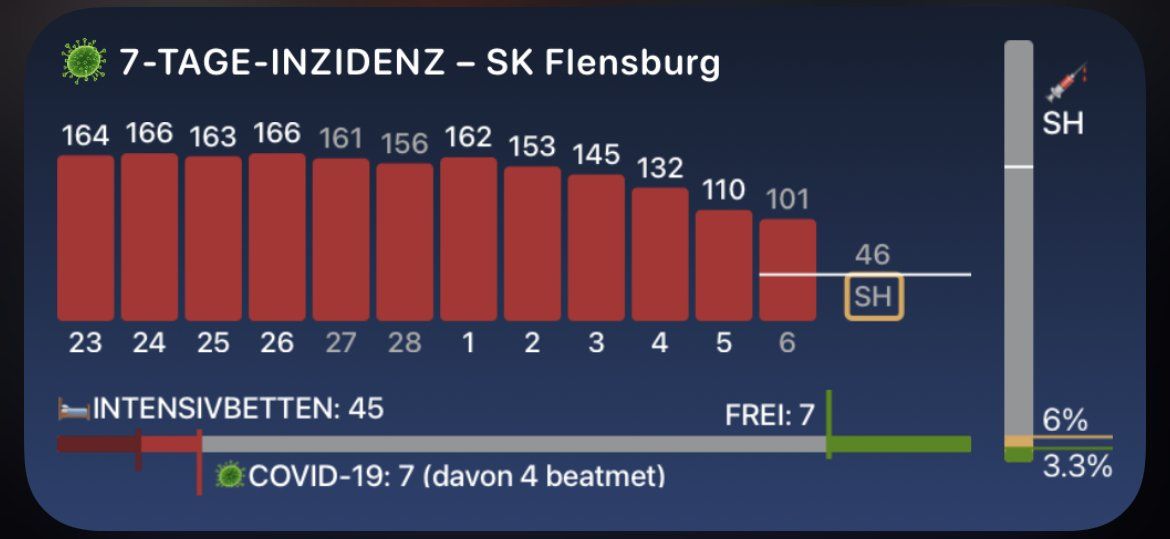 Zu meiner Verwunderung geht der Inzidenzwert in #Flensburg nach vielen Tagen ~160 endlich nach unten. 👍