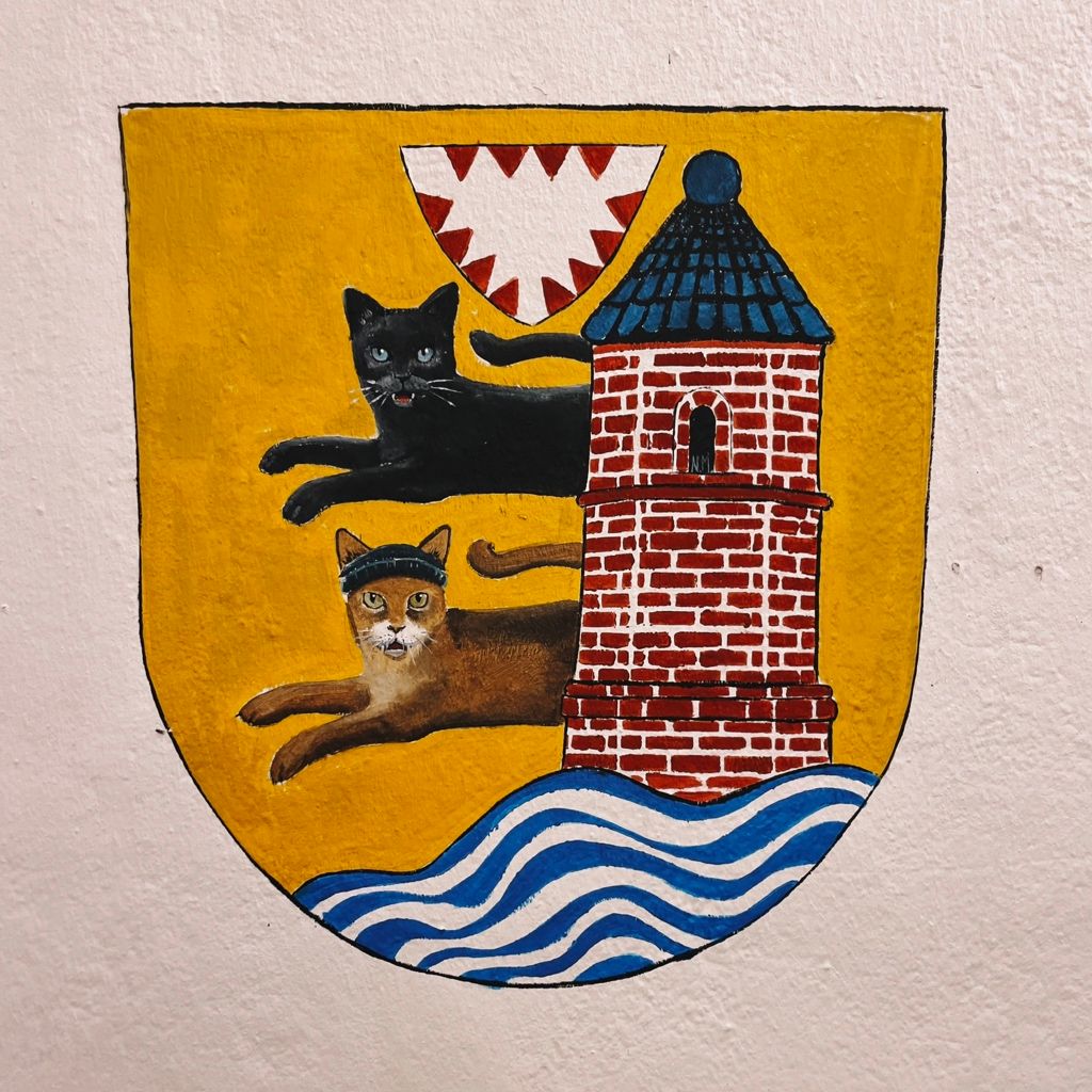 Die Flensburger #Katzenmalerin (N.M.) hat sich diesmal das #Flensburg|er Wappen vorgenommen. (Zu finden im Nordertor)