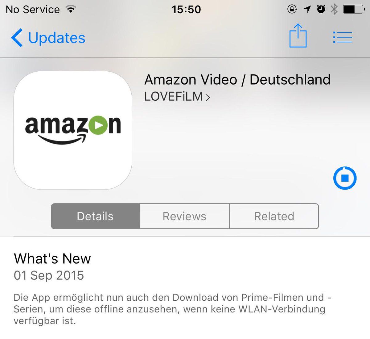 Amazon Prime Video Update mit Offline Funktion und aktualisiertem Icon.
