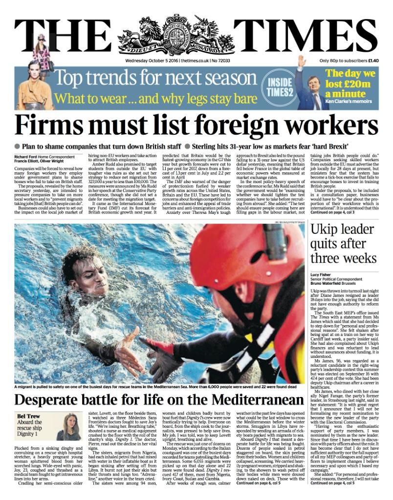 : Tomorrow's front page: Firms must list foreign workers #tomorrowspaperstoday
