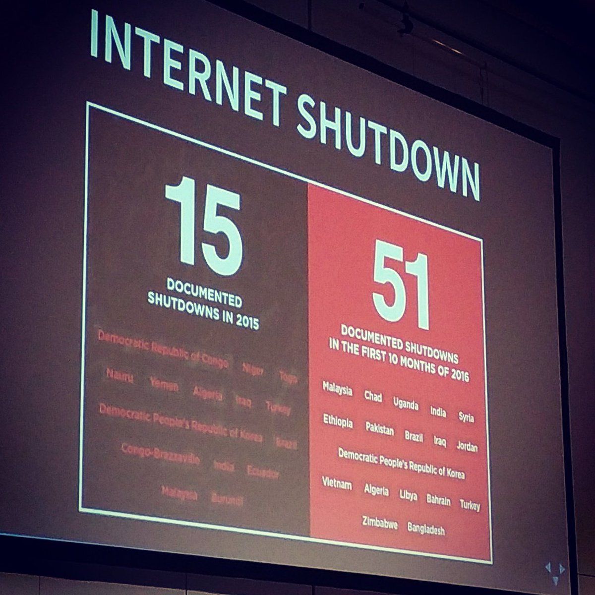 : Alarming development. Massive increase on Internet Shutdowns in 2016. #33c3